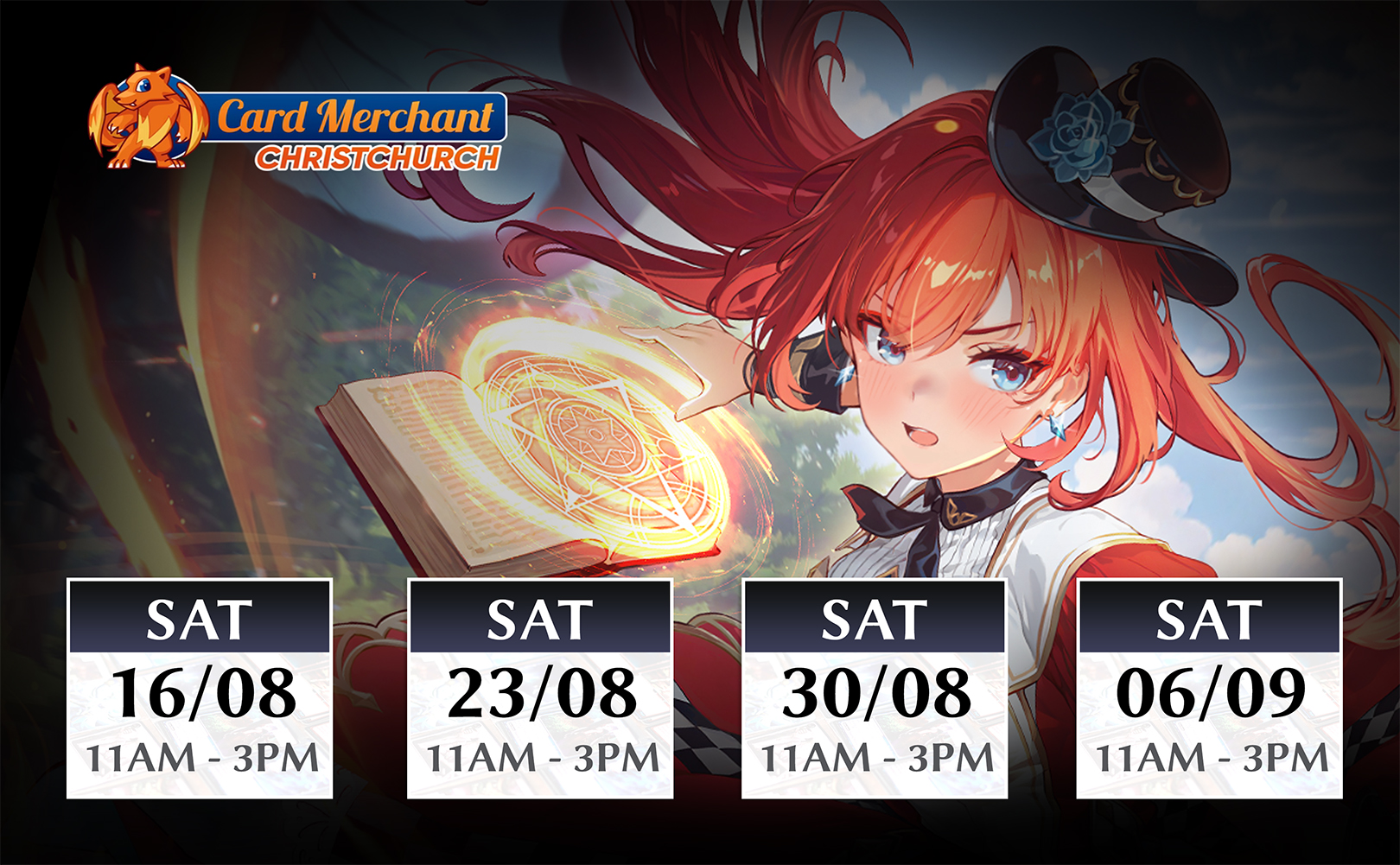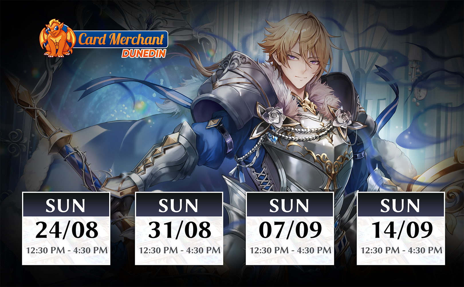 3 Distorted Reflections 1st Edition Booster PacksAugust 30 / 11:00 AM – 3:00 PMAugust 16 / 11:00 AM – 3:00 PMAugust 23 / 11:00 AM – 3:00 PMSeptember 6 / 11:00 AM – 3:00 PM23 Princes Street, Central Dunedin, Dunedin 9016, New ZealandAugust 31 / 12:30 PM – 4:30 PMCARD MERCHANT DUNEDINIntroducing the Academy Program! Experience Grand Archive TCG – an anime card game with western game design. This fun, beginner friendly Learn to Play event is the perfect way to dive into the game. New players who complete a demo and sign up for Omnidex (our organized play software) will receive: