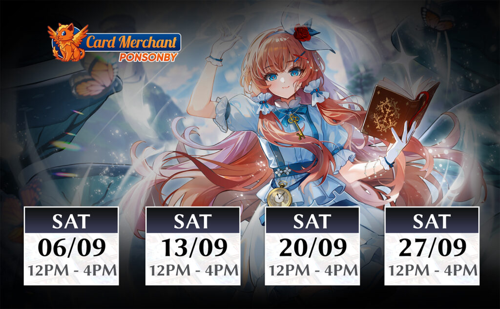3 Distorted Reflections 1st Edition Booster PacksSeptember 7 / 11:00 AM – 3:00 PMSeptember 21 / 11:00 AM – 3:00 PMSeptember 28 / 11:00 AM – 3:00 PM15 Rose Road, Grey Lynn, Auckland 1021, New ZealandSeptember 13 / 12:00 PM – 4:00 PMCARD MERCHANT PONSONBYIntroducing the Academy Program! Experience Grand Archive TCG – an anime card game with western game design. This fun, beginner friendly Learn to Play event is the perfect way to dive into the game. New players who complete a demo and sign up for Omnidex (our organized play software) will receive: