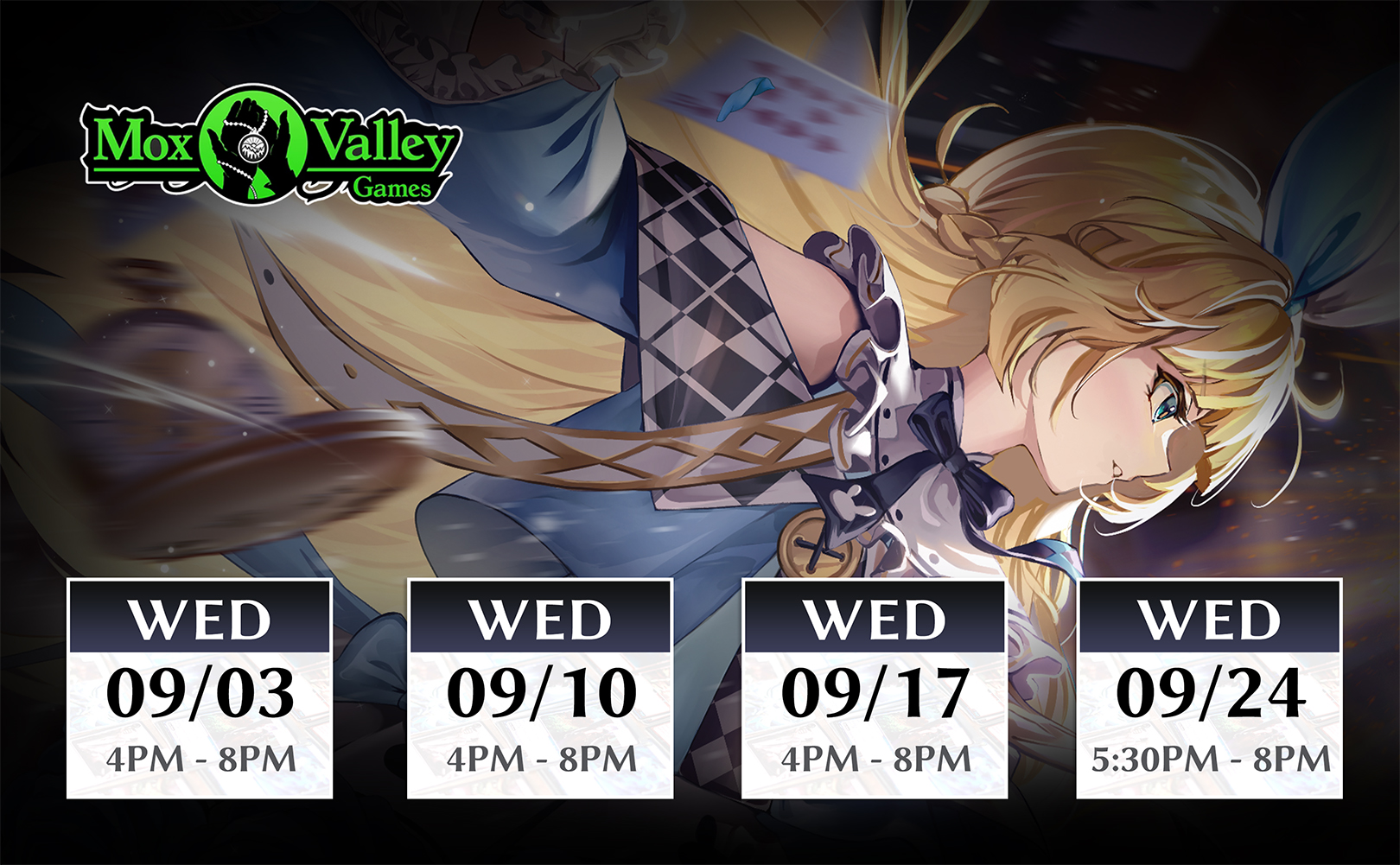 3 Distorted Reflections 1st Edition Booster PacksAugust 9 / 12:00 PM – 4:00 PMAugust 30 / 12:00 PM – 4:00 PMSeptember 6 / 12:00 PM – 4:00 PM1843 Pioneer Pkwy E, Springfield, OR 97477, USASeptember 10 / 12:00 PM – 4:00 PMMOX VALLEY GAMESIntroducing the Academy Program! Experience Grand Archive TCG – an anime card game with western game design. This fun, beginner friendly Learn to Play event is the perfect way to dive into the game. New players who complete a demo and sign up for Omnidex (our organized play software) will receive: