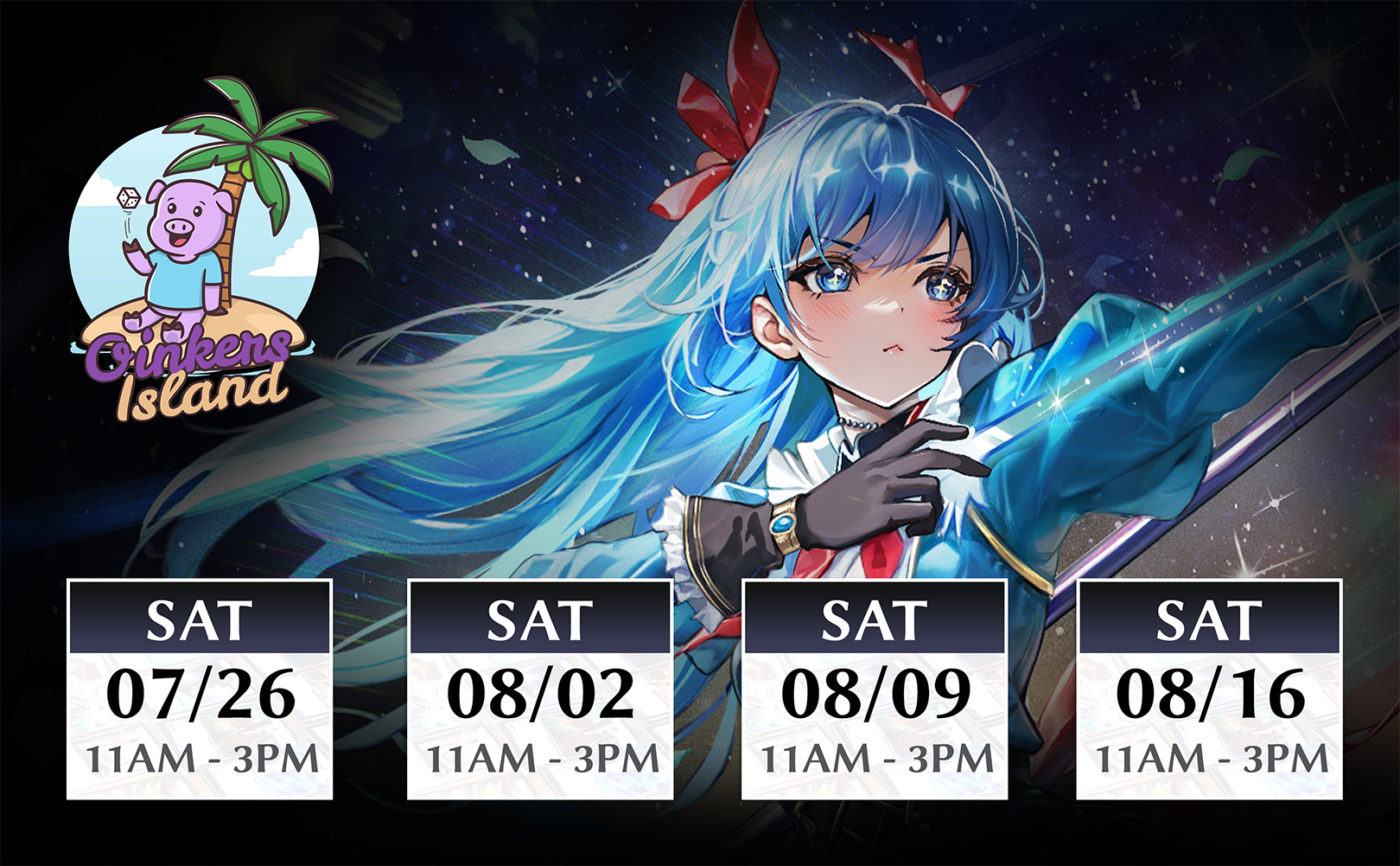 3 Distorted Reflections 1st Edition Booster PacksSeptember 3 / 12:00 PM – 4:00 PMSeptember 17 / 12:00 PM – 4:00 PMSeptember 24 / 5:30 PM – 8:00 PM745 N Aspen Ave, Broken Arrow, OK 74012, USAAugust 2 / 11:00 AM – 3:00 PMOINKER’S ISLANDIntroducing the Academy Program! Experience Grand Archive TCG – an anime card game with western game design. This fun, beginner friendly Learn to Play event is the perfect way to dive into the game. New players who complete a demo and sign up for Omnidex (our organized play software) will receive: