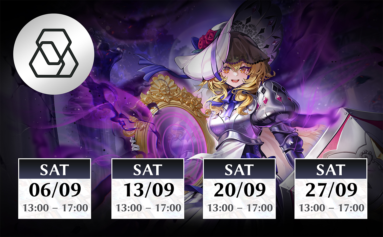 3 Distorted Reflections 1st Edition Booster PacksSeptember 13 / 1:00 PM – 5:00 PMSeptember 27 / 1:00 PM – 5:00 PMOctober 4 / 1:00 PM – 5:00 PMJapan, 〒556-0011 Osaka, Naniwa Ward, Nanbanaka, 2-chōme−2−15 高砂ビル 5FAugust 9 / TIMES TBATCG CAFE & BAR EVOIntroducing the Academy Program! Experience Grand Archive TCG – an anime card game with western game design. This fun, beginner friendly Learn to Play event is the perfect way to dive into the game. New players who complete a demo and sign up for Omnidex (our organized play software) will receive: